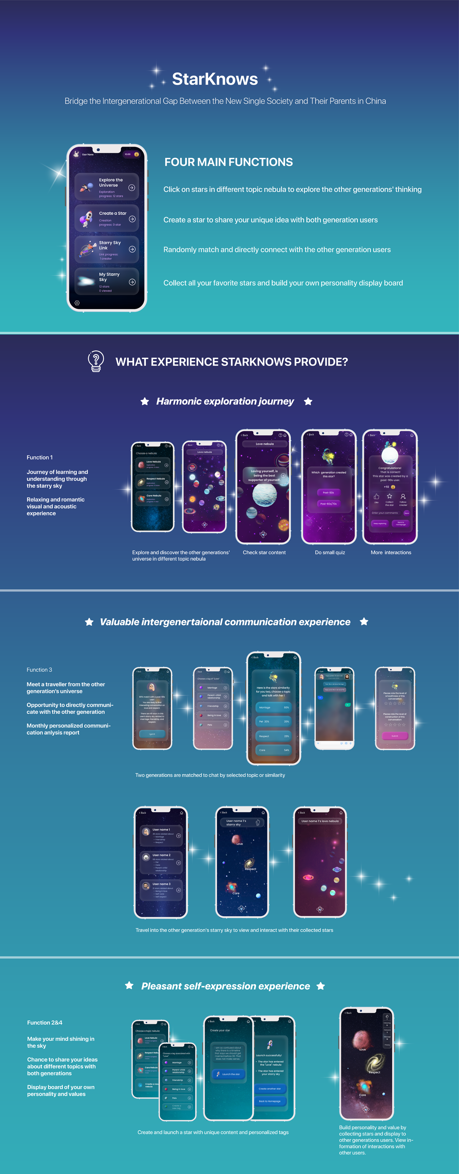 starry sky theme and social gaming mechanics.