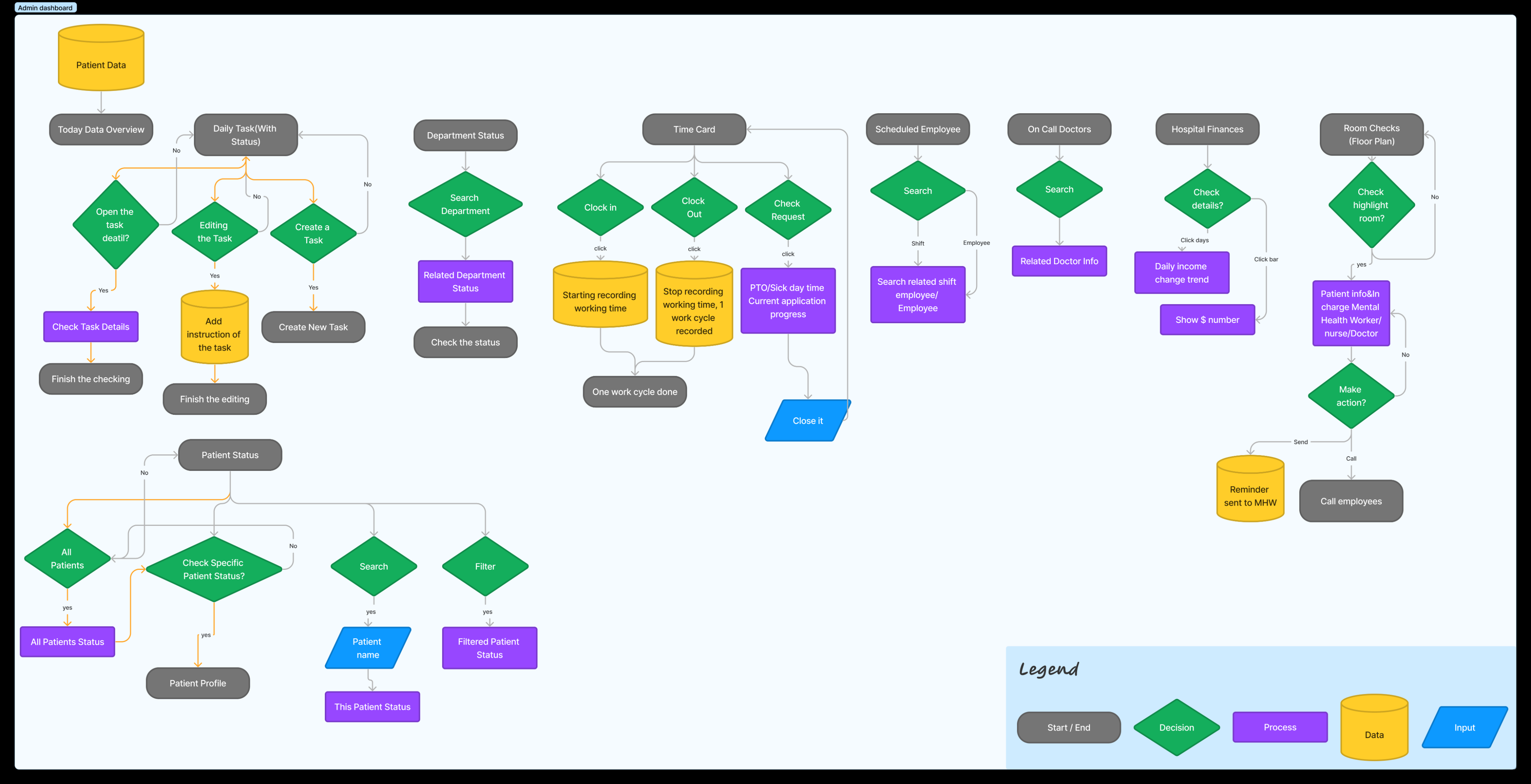 Information Architecture diagram to map out all key sections of the admin dashboard.